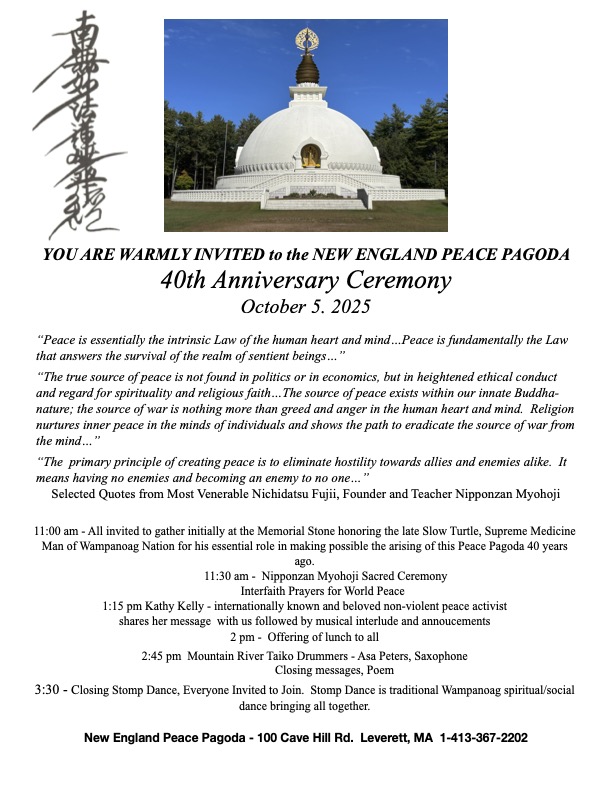 The New England Peace Pagoda was completed and inaugurated in 1985.